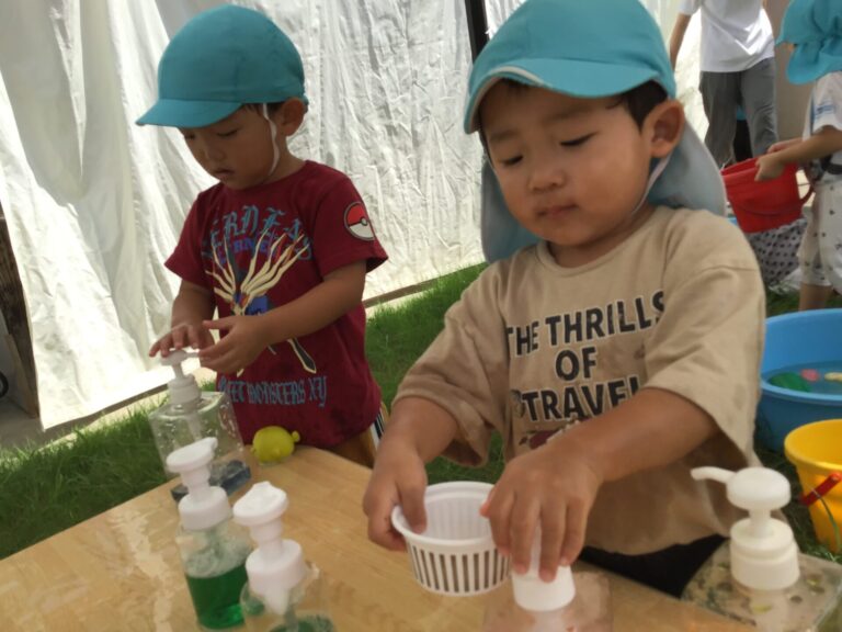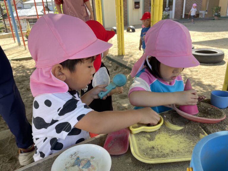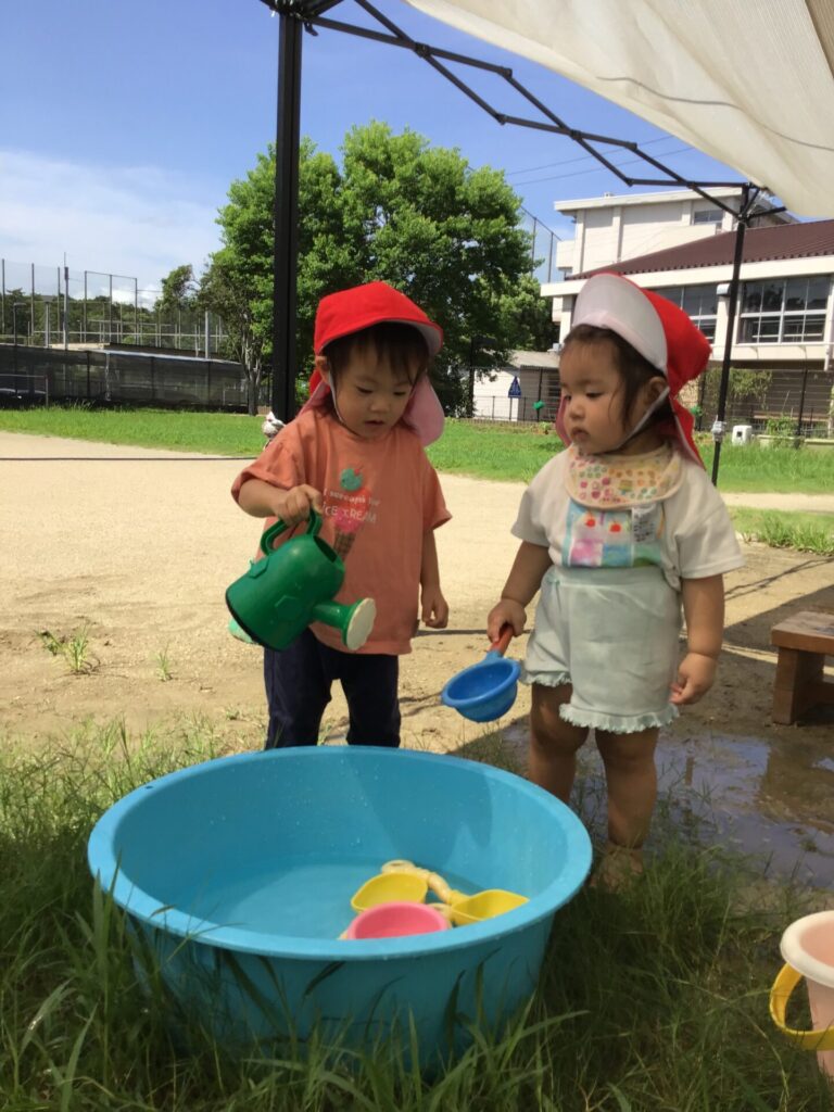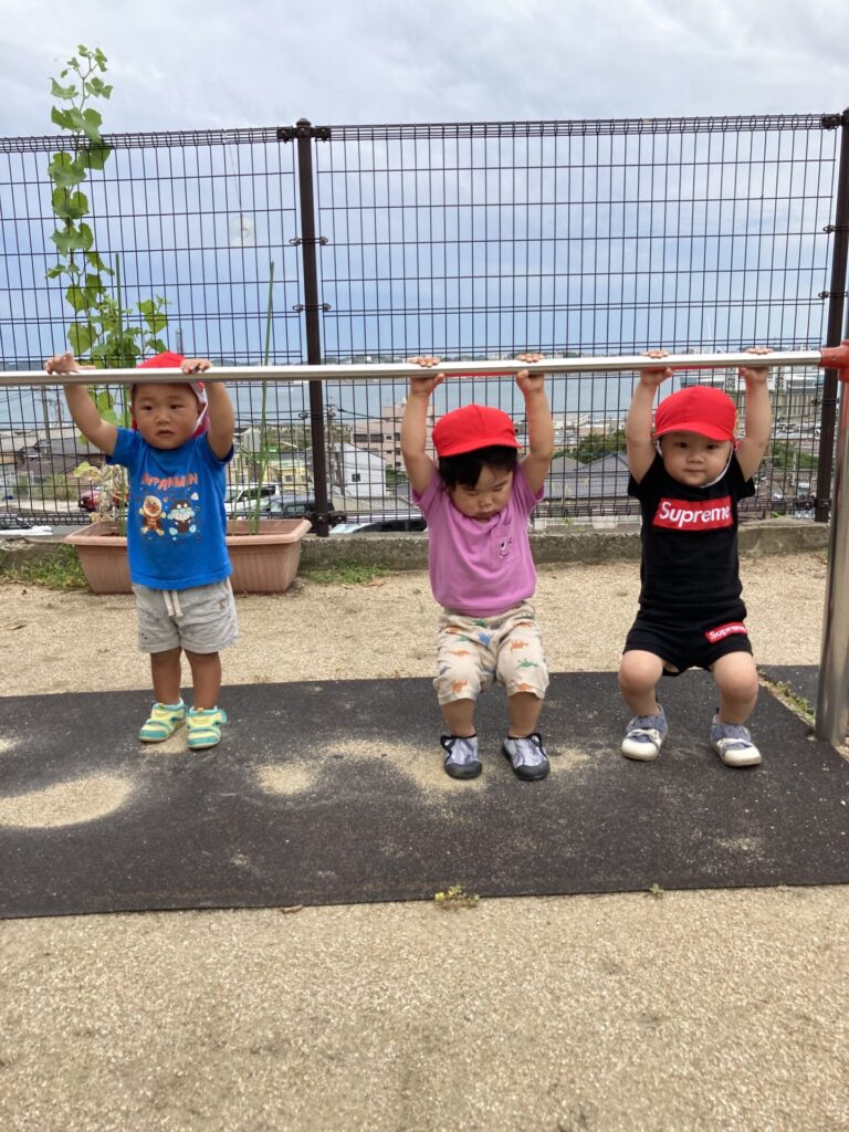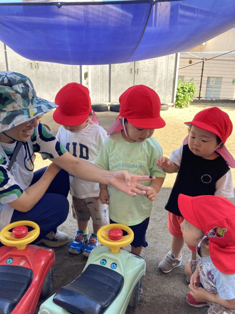 1・2歳児クラスは、少しずつ過ごしやすい気候になったので、外で遊ぶ日が増えてとても嬉しそうです。