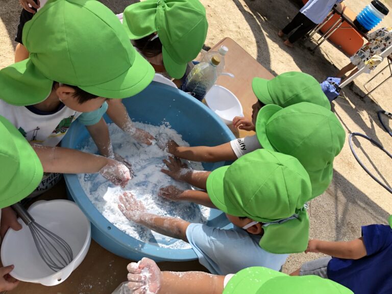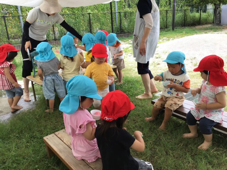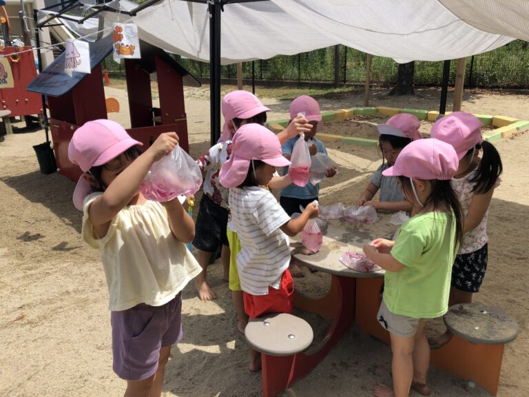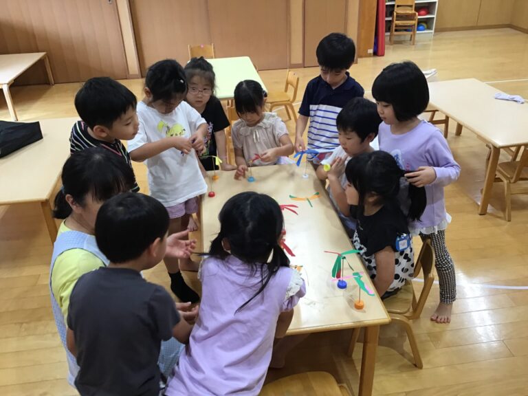 食事をして、年長組が年中、年少組のお友達をお部屋まで送り届けてくれて終了です。お部屋に戻ってくると、「こんなことしたんだ~!」「たのしかったよ!」とにこにこ笑顔!毎回とても楽しい時間を過ごせているんだなと嬉しくなります。