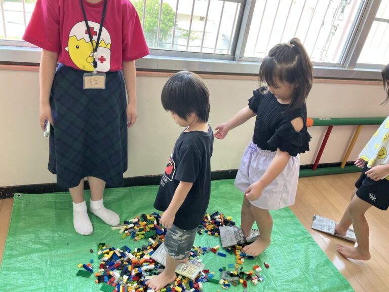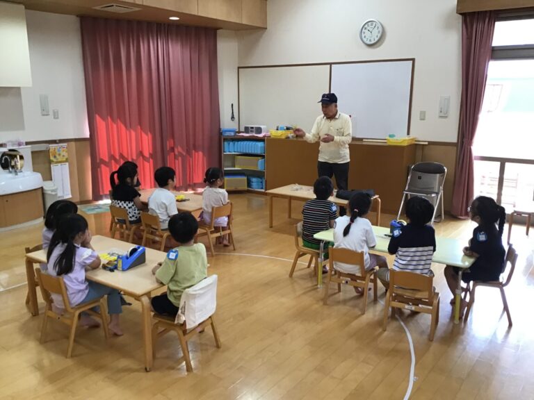 明治学園の高校生が子どもたちに防災教室を開いてくれました。いつもの避難訓練とは違い、遊びながら体験できる内容だったので、なぜ訓練が必要なのか?ということも学べたようです。