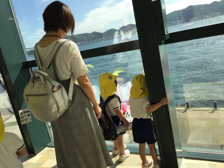 海響館まで親子遠足に行ってきました。8月にリニューアルした海響館だけあって、当日は約30団体の利用がありましたが、なんとか混雑をさけてスケジュールを終わらせることができました。お天気にも恵まれ、海風が心地よい遠足でした!