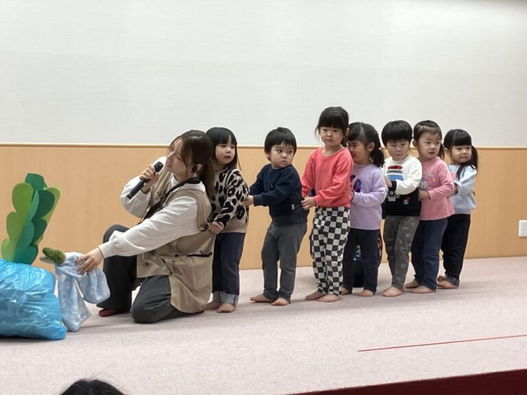 2月20日にいのちのたび博物館へ社会科見学に行ってきました。恐竜の骨や海の生き物の展示を見て「おおきいね」「かっこいい!」と興味津々のぞう組でした。動く恐竜の展示や、噴火の演出に驚いたり、説明をじっくり聞いたりと、たくさん楽しんできました。