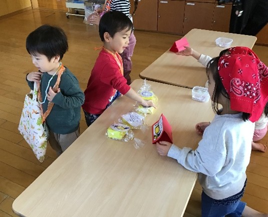 児童館でのお買い物ごっこにひまわり組(5歳児)が参加しました。