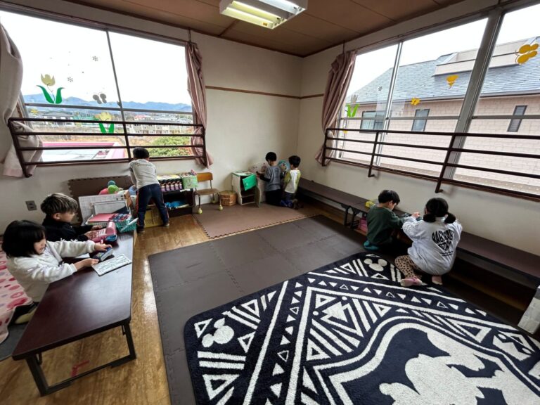 白酒の代わりにカルピスを、ひし餅の代わりにラムネを味わいました。畳の上でちょっぴり厳かに?ひな祭りを行いました。「なんか緊張する」とよそ行きの表情の子どもたちでした!