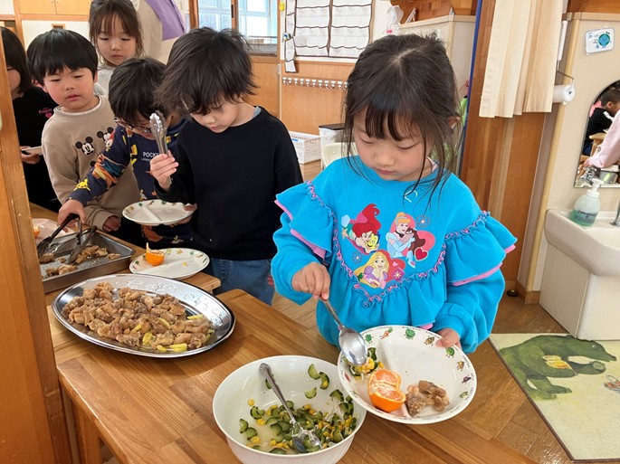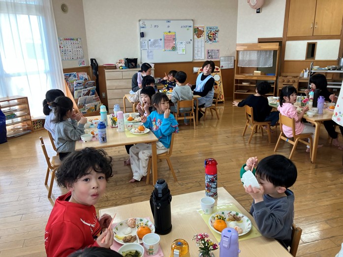 3月11日にお別れ会食会がありました。異年齢の3つのグループに分かれて、ゲームをしたり、会食をしたりしました。