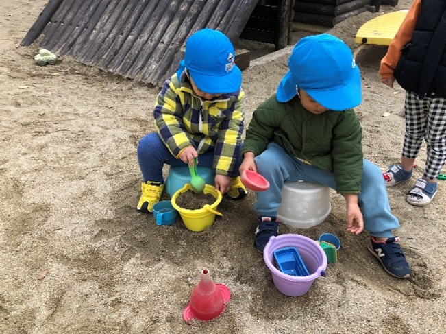 寒さに負けず元気いっぱいに外遊びを楽しんでいます。