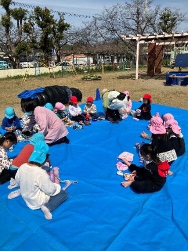 暖かな春の日差しの中、お別れ遠足で北方平和公園に行きました。3、4、5歳児は異年齢で手を繋ぎながら歩く姿や、自然の中で伸び伸びと遊ぶ子どもたちの笑顔がたくさん見られ、思い出に残る一日となりました。また、2歳児クラスは保育所周辺を散歩し、室内で遠足気分を味わいながら楽しい時間を過ごしました。