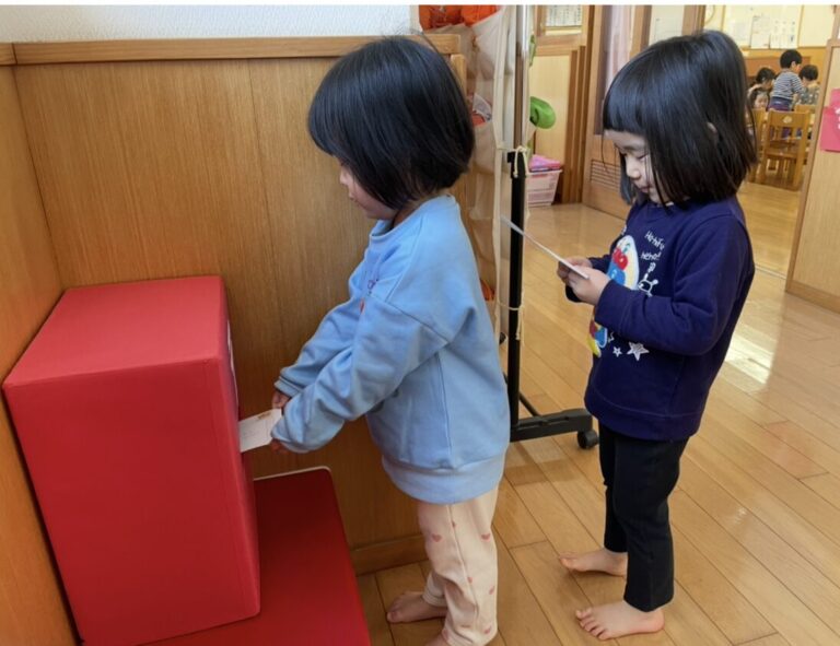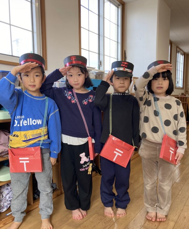 年長児ぞうグループが郵便局員となり、郵便ごっこをしました。