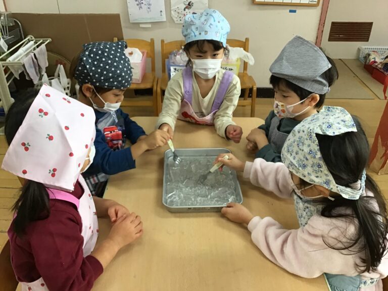 ゼリーをかきごおりに見立てて”かきごおりゼリークッキング”をしました。