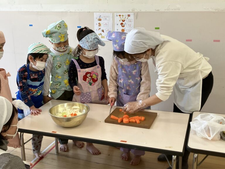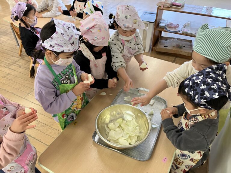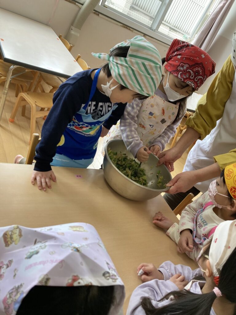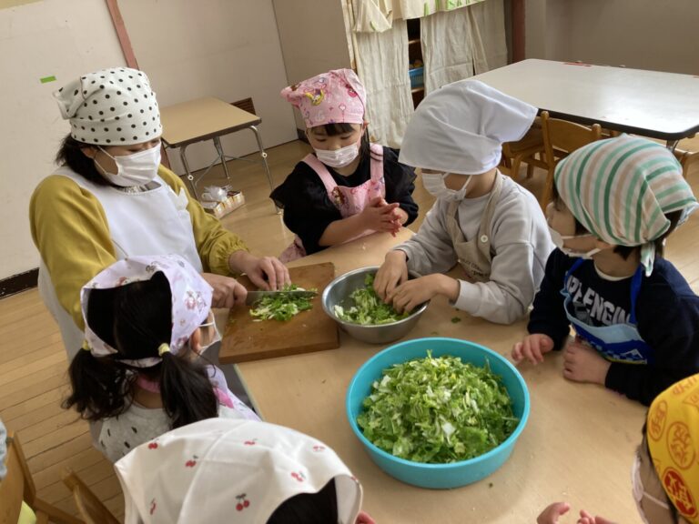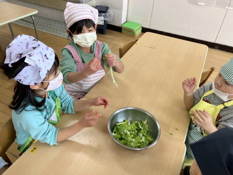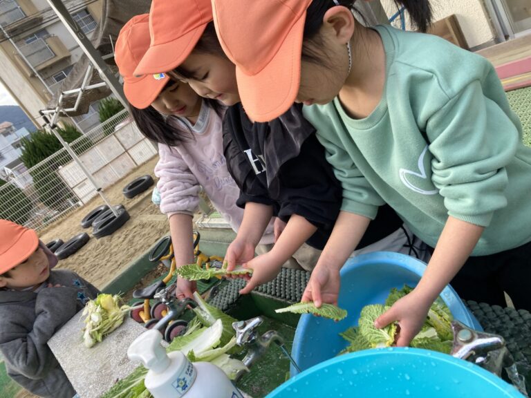 うさぎ組が育てた白菜がちょうど食べごろになり、みんなでクッキングをして食べよう!ということになりました。職員お薦めの『白菜シーチキン』を作ることになり、朝から「早く作ろう!」と期待に胸をふくらませていました。