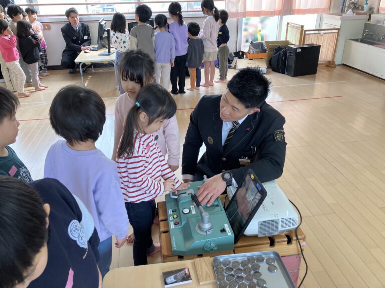 JRの職員さんが子どもたちにも体験できるお仕事を準備してくださいました。電車が大好きな子どもたちは、憧れの運転手さんや車掌さんになってはりきってお仕事をしていました。