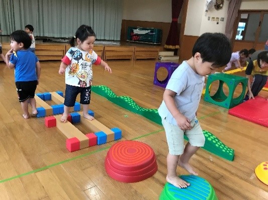 毎日の遊びの中で、走る、跳ぶ、引っ張るなど全身を使った遊びを楽しんでいます。