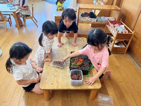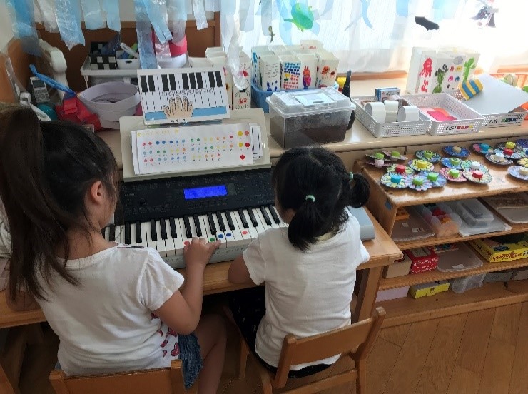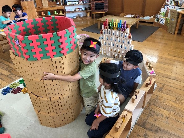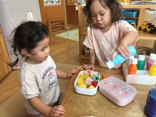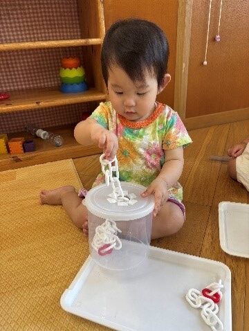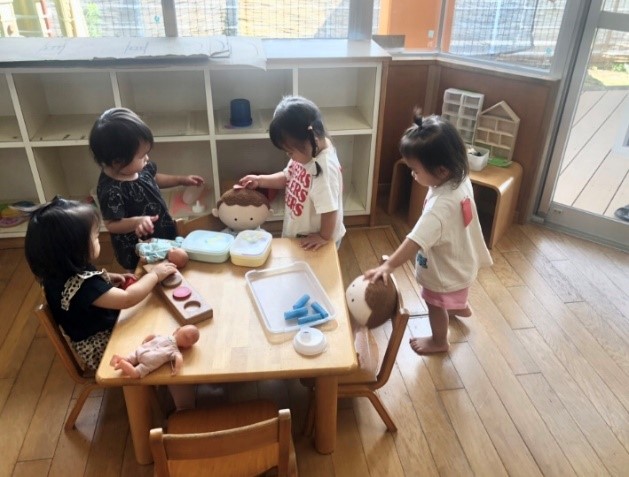 室内での遊びの様子を紹介します。友達と一緒に関わりながらままごとでのやり取りや、指先を使った遊びを楽しんでいます。