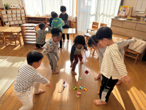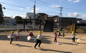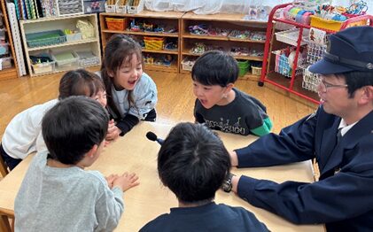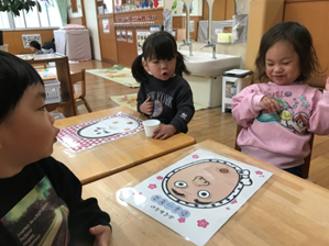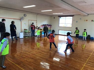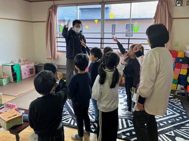 1月30日(金)にひまわり組(5歳児)が楠橋児童館へ行き、児童館はどんなところで、何をして過ごすかなどを教えてもらいました。楠橋保育所の友達も一緒に楽しい時間を過ごしました。