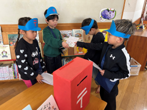 12月12日(金)に楠橋小学校で開催された児童館の児童厚生員さんによる人形劇をさくら(4歳児)・ひまわり組(5歳児)が観に行きました。