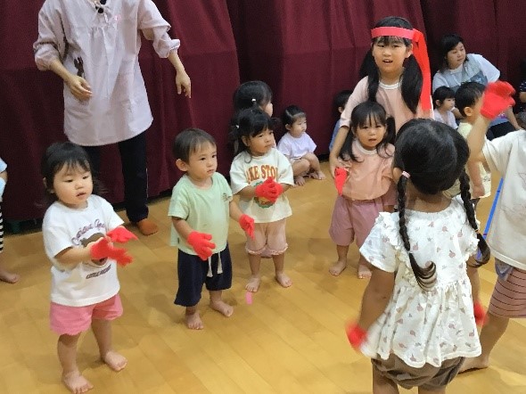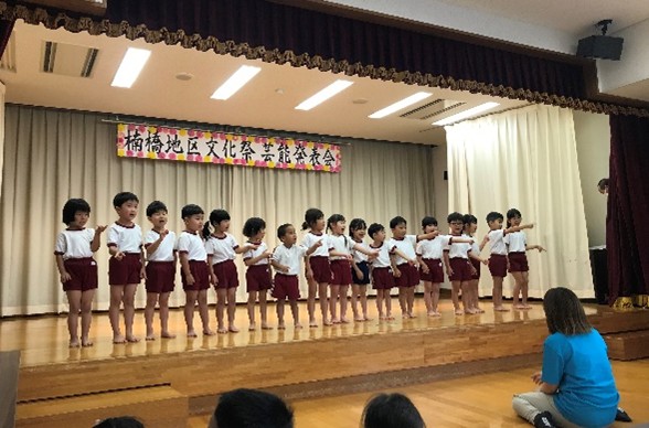 10月18日(土)に楠橋市民センタ―文化祭に4、5歳児が参加しました。少し緊張しながらも地域の方や保護者の前で、踊りや手話歌を披露することができました。