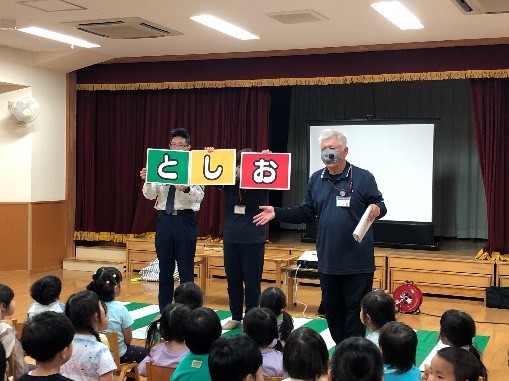 10月24日(金)に交通安全教室があり、3・4・5歳児が参加しました。交通ルールについてのクイズや横断歩道の渡り方などを分かりやすく教えてもらいました。