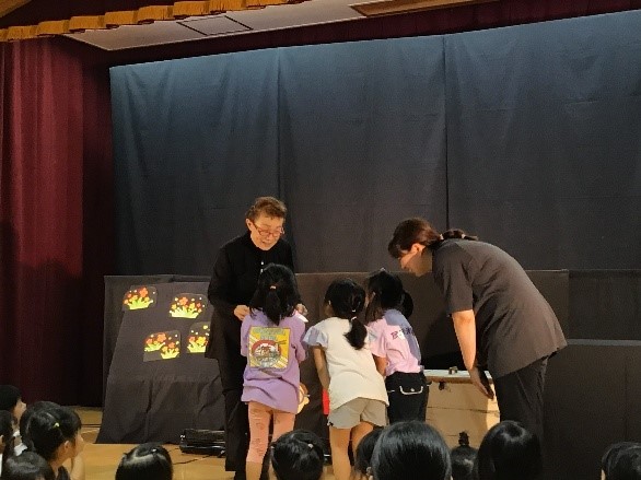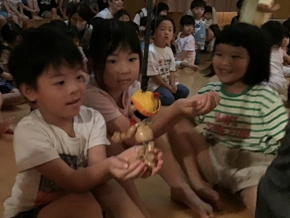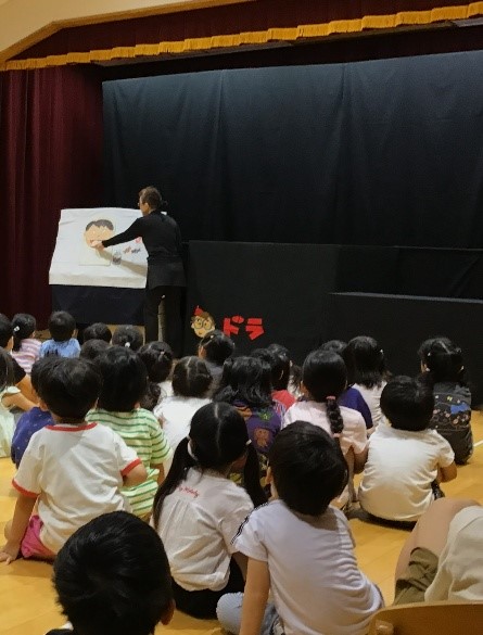 二島保育所保護者会のイベントで、ドラさんの『人形ボードヴィルショー』がありました。ドラさんとの楽しいやりとりや様々な仕掛けに、終始ドキドキわくわくしている子どもたちでした。
