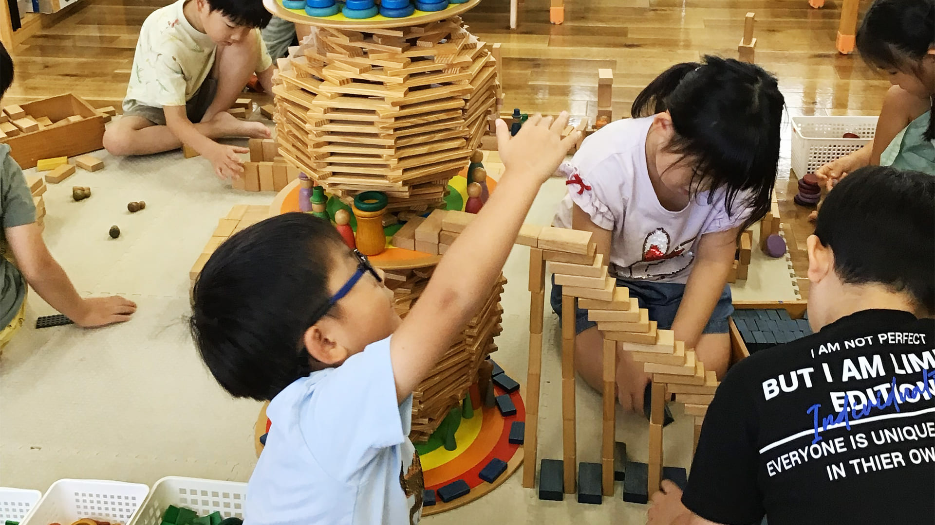 - 年長者の方と触れ合い、伝承あそび等日本の伝統文化に触れる機会を大切にし、他施設との交流を通し、子ども達がお互いを認め合い、思いやりを持った関わりの中で成長し合える保育を行っています。